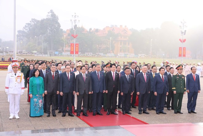 Các lãnh đạo Đảng, Nhà nước và đại biểu dự Đại hội XIV của Đảng đã vào Lăng viếng Chủ tịch Hồ Chí Minh, tưởng niệm các Anh hùng liệt sĩ.