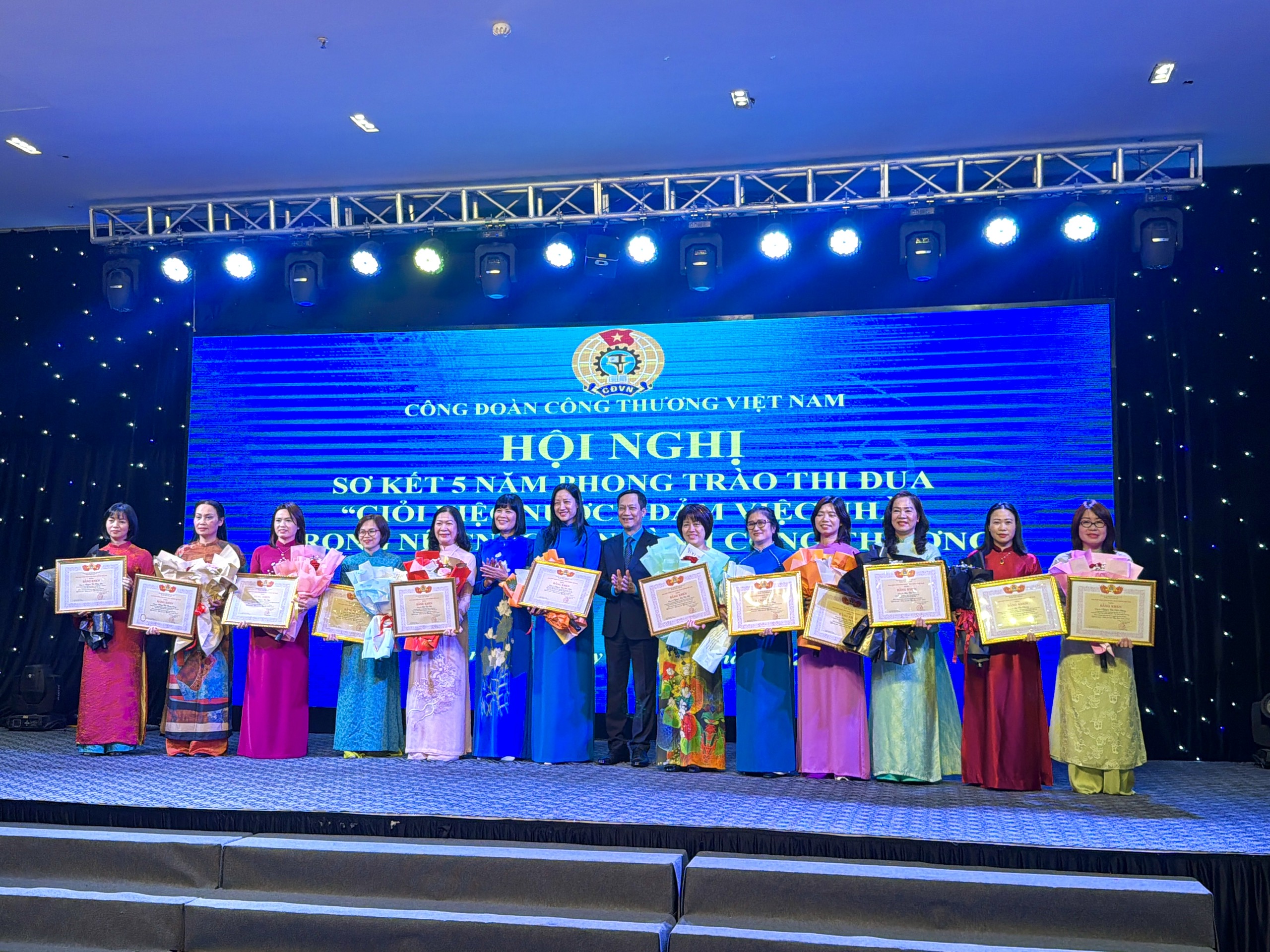 Tại hội nghị, Công đoàn Công Thương Việt Nam đã biểu dương khen thưởng cho 30 trưởng ban nữ công tiêu biểu; 5 Cờ cho tập thể; Bằng khen cho 26 tập thể và 59 cá nhân.