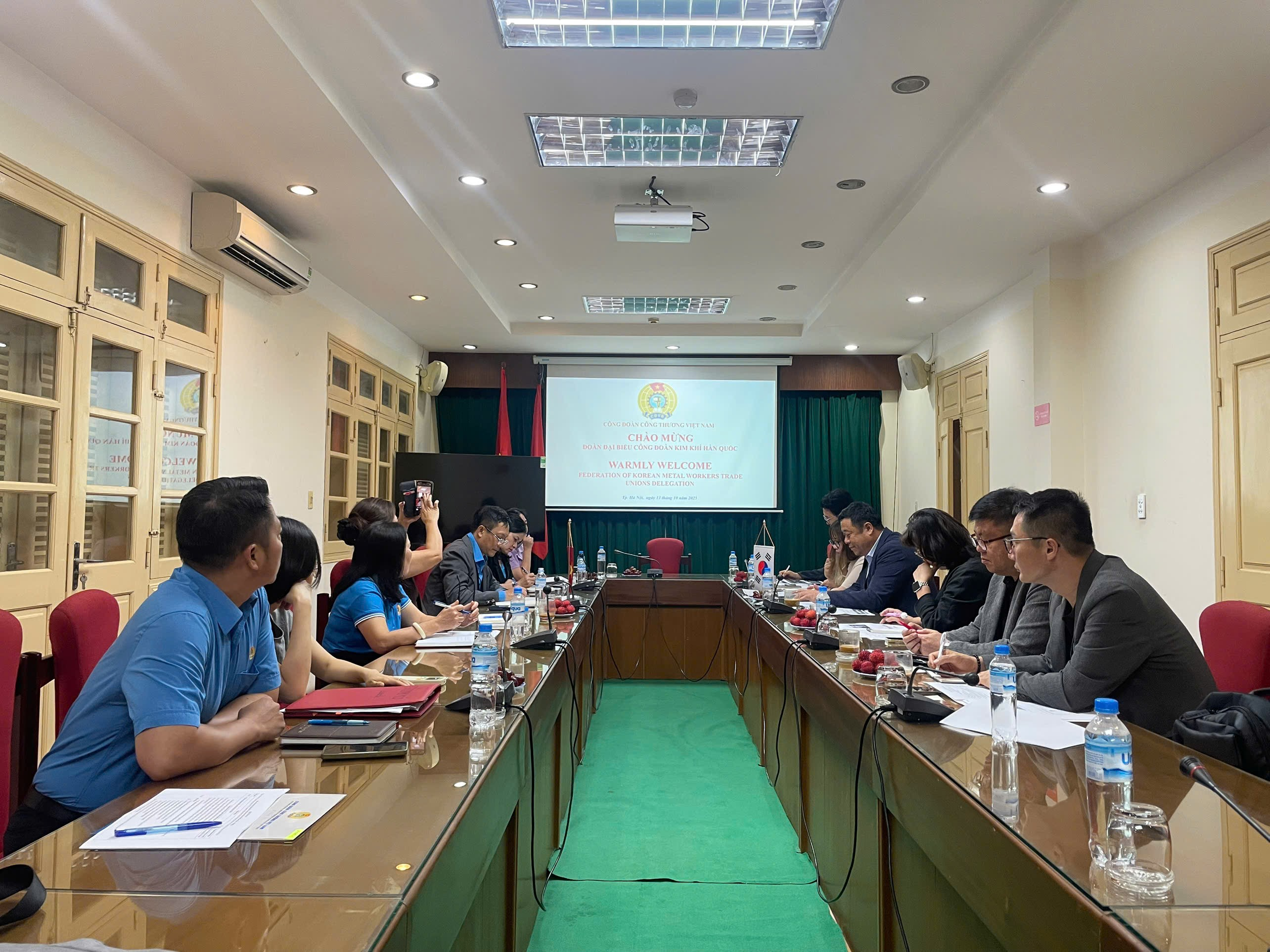 Tham dự buổi tiếp và làm việc với đoàn chiều ngày 13/10/2025 tại trụ sở Cơ quan CĐCTVN số 23 Nguyễn Văn Huyên có đồng chíLê An Hải, Chủ tịch CĐCTVN; đồng chí Lê Thị Đức, Phó Chủ tịch CĐCTVN và đại diện các Ban, Văn phòng CĐCTVN; đại diện Lãnh đạo một số đơn vị cấp trên cơ sở trực thuộc ngành Công Thương. Thay mặt Ban Thường vụ CĐCTVN, Chủ tịch Lê An Hải bày tỏ niềm vui mừng được chào đón các bạn Hàn Quốc quay trở lại thăm và làm việc với CĐCTVN. Đồng thời, đồng chí cũng chia sẻ với các đại biểu về tình hình kinh tế - xã hội cũng như tình hình phong trào công nhân công đoàn trong 9 tháng vừa qua tại Việt Nam. Để nâng cao chất lượng hoạt động CĐCTVN nhiệm kỳ 2023 - 2028, CĐCTVN đã đề ra một số chỉ tiêu phấn đấu như: