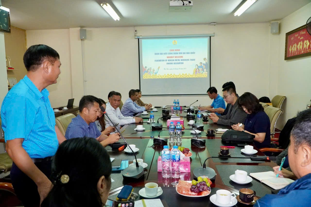 Căn cứ ý kiến chỉ đạo của Thường trực Ban Bí thư tại Công văn số 12736-CV/VPTW ngày 26/12/2024 của Văn phòng Trung ương Đảng và ý kiến của Ban Đối ngoại Trung ương tại Công văn số 15820-CV/BĐNTƯ ngày 21/01/2025 về việc phê duyệt Kế hoạch Đối ngoại năm 2025. Vừa qua từ ngày 13 - 17/10/2025, Công đoàn Công Thương Việt Nam (CĐCTVN) đã đón đoàn đại biểu Công đoàn Kim khí Hàn Quốc (FKMTU) sang thăm và làm việc tại Việt Nam.