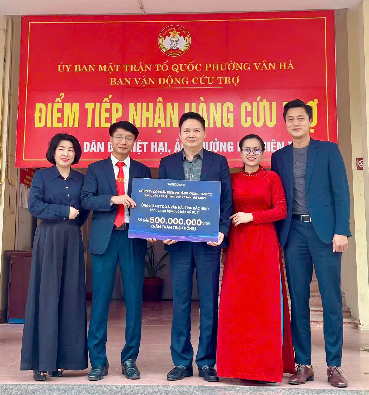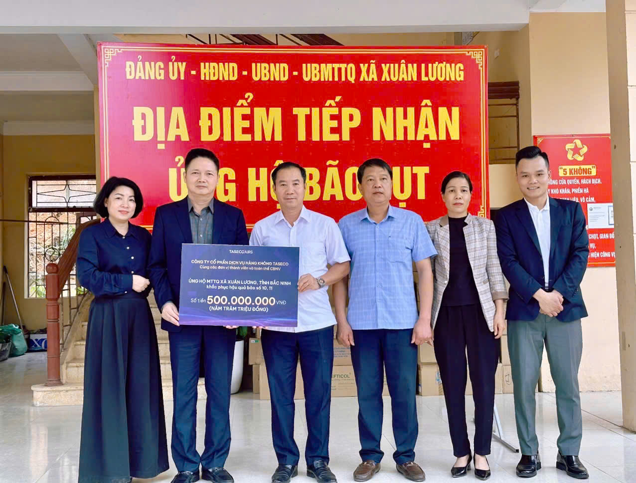 Ngày 24/10, Công ty Cổ phần Dịch vụ Hàng không Taseco (Taseco Airs) đã trao tặng Ủy ban Mặt trận Tổ quốc Nhân dân xã Xuân Lương và Ủy ban Mặt trận Tổ quốc Việt Nam phường Vân Hà, tỉnh Bắc Ninh, mỗi đơn vị 500 triệu đồng nhằm hỗ trợ khắc phục hậu quả do cơn bão số 11 và đợt mưa lũ đặc biệt lớn vừa qua.