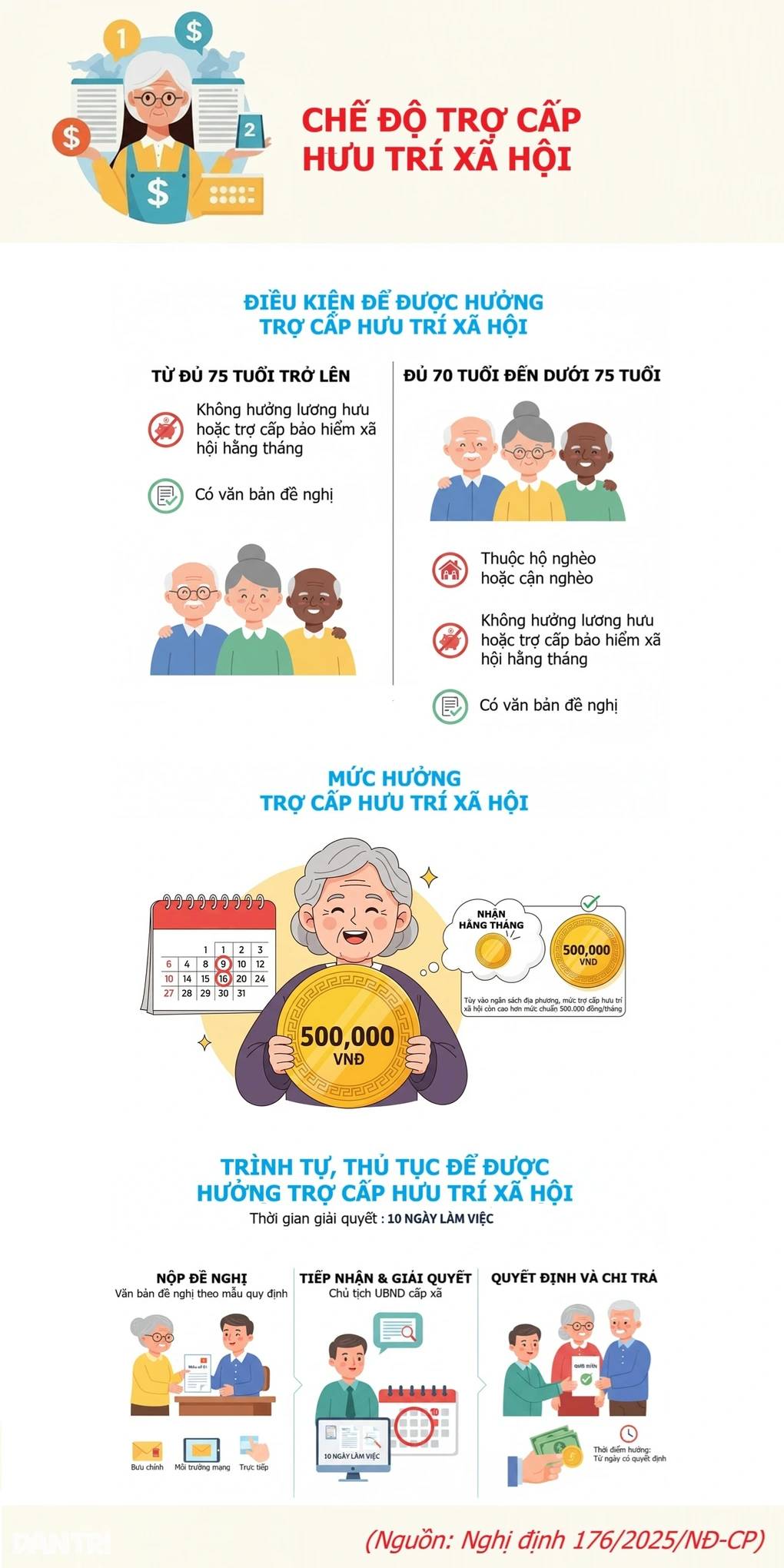 Theo Nghị định số 176/2025/NĐ-CP, từ ngày 1/7, công dân Việt Nam đủ điều kiện sẽ được hưởng trợ cấp hưu trí xã hội.