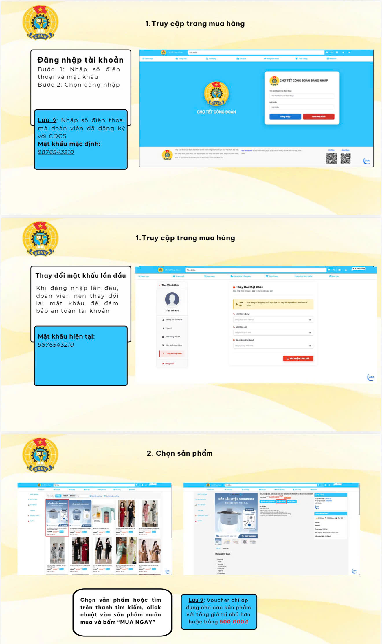 Đoàn viên công đoàn được Tổng Liên đoàn Lao động Việt Nam cấp e-voucher mua hàng hóa, sản phẩm trên website chính thức (địa chỉ: https://chotet.congdoan.vn/) hoặc ứng dụng trên thiết bị thông minh của Chương trình trong thời gian diễn ra Chương trình từ 0h00 ngày 20/12/2025 đến 24h00 ngày 03/02/2026 (từ 0h00 ngày 01/11 đến 24h00 ngày 16/12 năm Ất Tỵ).