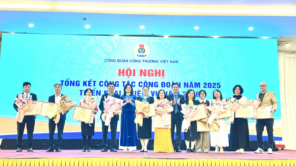 Nhân dịp này, Công đoàn Công Thương Việt Nam đã trao Cờ Thi đua của Tổng Liên đoàn Lao động Việt Nam, Cờ Thi đua, Bằng khen của Công đoàn Công Thương Việt Nam và Kỷ niệm chương “Vì sự nghiệp phát triển ngành Công Thương” cho các tập thể, cá nhân có thành tích xuất sắc trong năm 2025.
