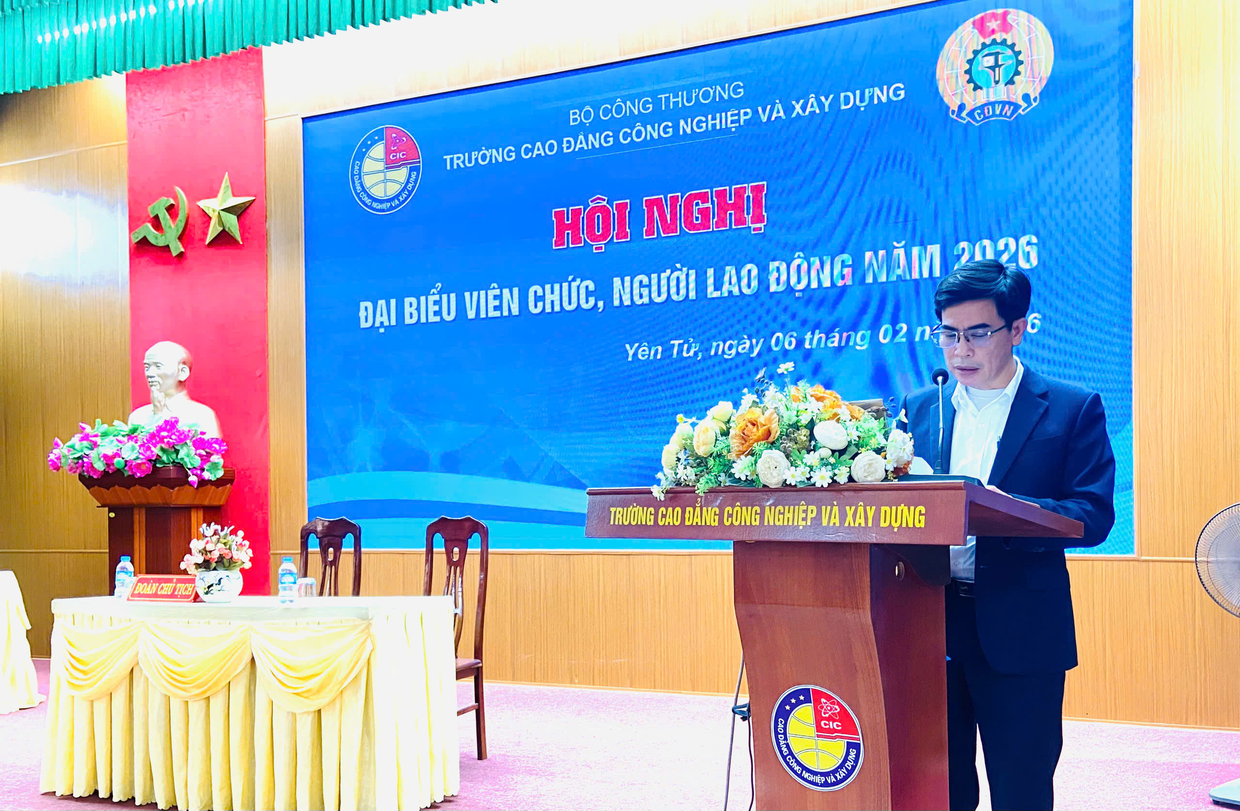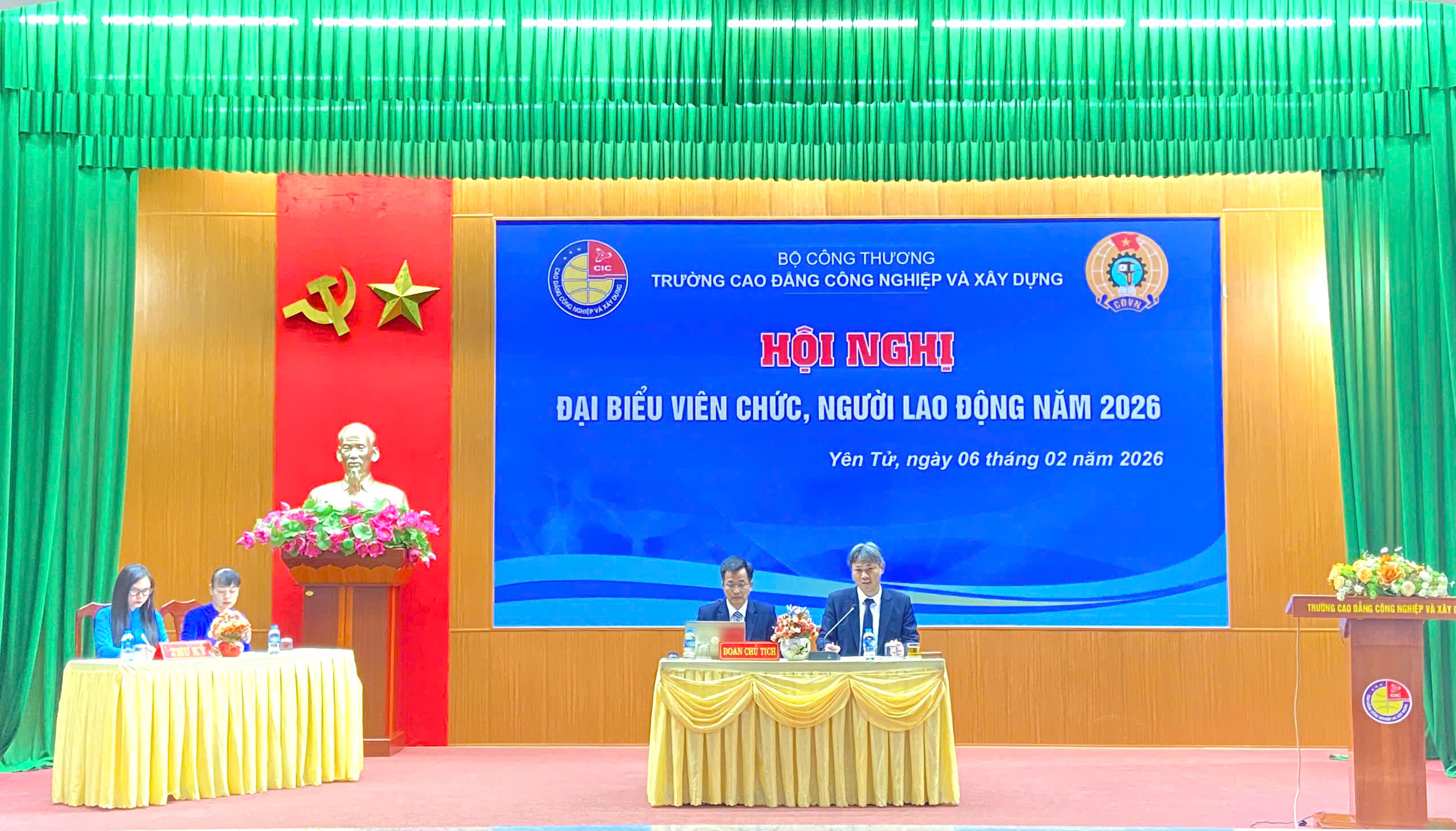 Ngày 06/02/2026, tại trụ sở chính phường Yên Tử, Trường Cao đẳng Công nghiệp và Xây dựng (Bộ Công Thương) đã tổ chức Hội nghị đại biểu viên chức, người lao động năm 2026. Hội nghị được tổ chức đúng quy định, bảo đảm phát huy dân chủ cơ sở, quyền và trách nhiệm của viên chức, người lao động trong tham gia quản lý, xây dựng và phát triển Nhà trường.
