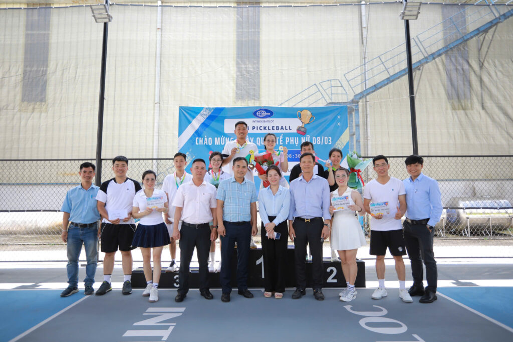 Tại Intimex Bảo Lộc: Tinh thần thể thao bùng nổ với giải đấu Pickleball được tổ chức đầy năng lượng. Đây là sân chơi ý nghĩa, nơi các chị em không chỉ rèn luyện sức khỏe mà còn thể hiện sự năng động, gắn kết, đúng với tinh thần “phụ nữ Intimex – giỏi việc nước, khỏe việc nhà”.