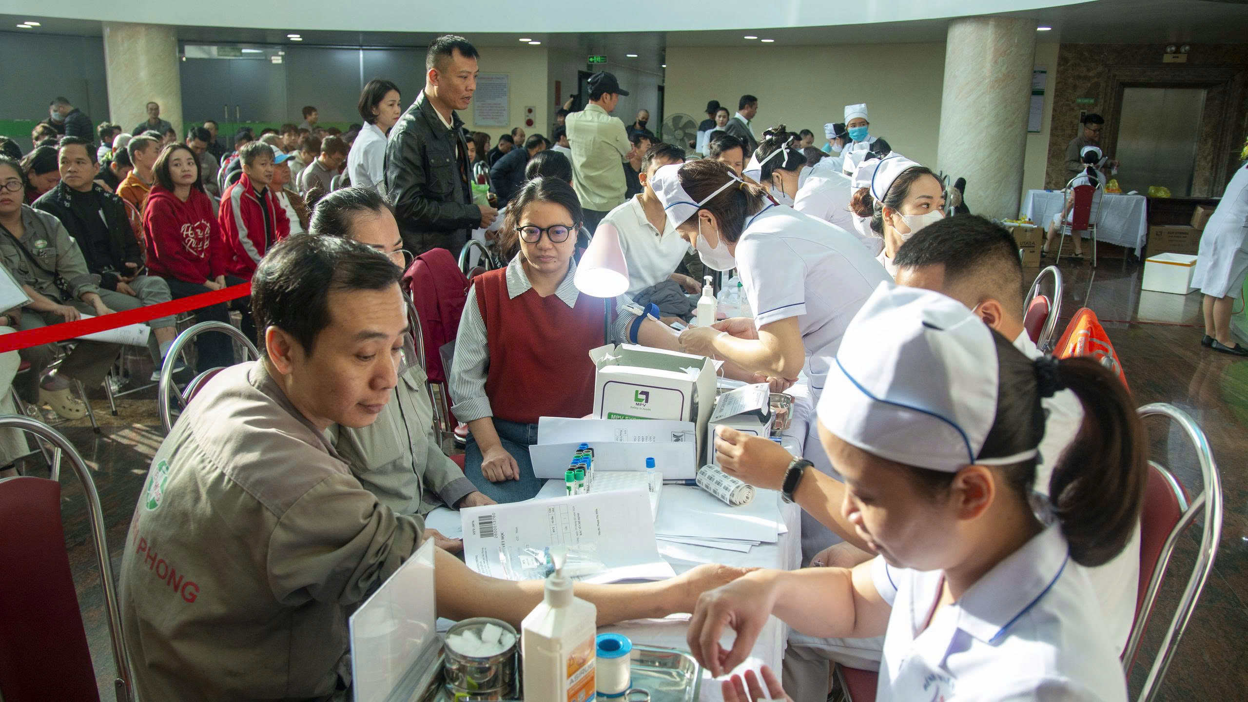 Nhằm xây dựng đội ngũ nhân sự toàn diện cả về chuyên môn và thể chất, bên cạnh việc tổ chức các khóa đào tạo, bồi dưỡng nghiệp vụ, Nhựa Tiền Phong đặc biệt quan tâm đến công tác chăm sóc sức khỏe người lao động thông qua các hoạt động như: hỗ trợ y tế tại chỗ, tăng cường bảo hộ lao động, kiểm soát môi trường làm việc theo tiêu chuẩn quốc tế và hơn hết là tổ chức khám tổng quát sức khỏe và tầm soát các bệnh nghề nghiệp định kỳ theo năm. Để đạt hiệu quả tốt, công ty phối hợp với các bệnh viện uy tín tại địa phương để thực hiện khám tổng quát, xét nghiệm cơ bản, kiểm tra chuyên đề bệnh lý tuyến giáp, tầm soát ung thư cho hơn 1.300 cán bộ công nhân viên. Trong quá trình thăm khám, các bác sĩ tiến hành lấy mẫu máu xét nghiệm, chụp X-quang, đo điện tim… từ đó đánh giá tình trạng sức khỏe và tư vấn phương pháp chăm sóc phù hợp cho từng cá nhân.