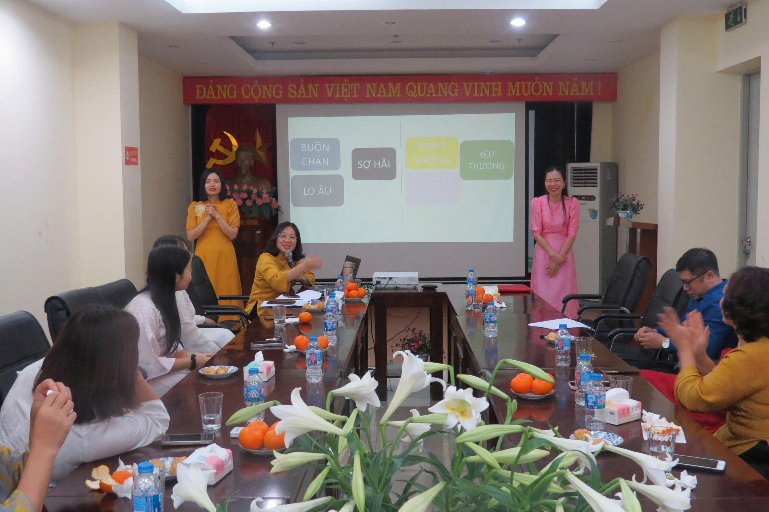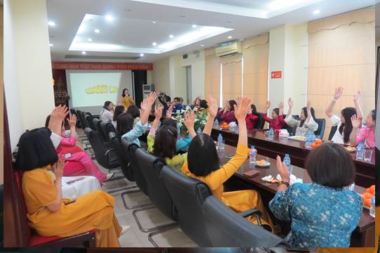 Trong chương trình, Ban Nữ công, Công đoàn Viện phối hợp tổ chức giao lưu trao đổi với diễn giả Tiến sĩ Nguyễn Thị Ánh Nguyệt đến từ Đại học Sư phạm Hà Nội về chủ đề: “Phụ nữ yêu thương bản thân và chăm sóc sức khỏe tinh thần”. Thông điệp của buổi trao đổi muốn truyền tải nội dung rằng tại cuộc sống hiện đại, phụ nữ thường phải tất bật với vô vàn lo toan từ gia đình, công việc cho đến các mối quan hệ xã hội. Điều này khiến nhiều chị em bận rộn với tất cả mọi thứ nhưng lại quên đi sự chăm sóc và yêu thương bản thân. Chính sự “bỏ quên” quên này khiến chị em thường không có sự quan tâm chăm sóc tốt cho sức khỏe thể chất, đặc biệt là tinh thần, để rồi đến khi cơ thể rã rời, tinh thần kiệt quệ mới bắt đầu học cách yêu thương bản thân thì đã bỏ lỡ rất nhiều điều quý giá mà không bao giờ có thể tìm lại được. Ngược lại, một phụ nữ biết yêu bản thân luôn tỏa ra sức hút đặc biệt, nhiều năng lượng tích cực và dễ dàng gặt hái được nhiều thành công trong mọi mặt, từ công việc, ngoài xã hội cho đến các mối quan hệ trong gia đình. Sau buổi nói chuyện và giao lưu, các nữ Công đoàn viên, VC-NLĐ của Viện chia làm các đội tham gia các “gameshow” trò chơi đầy sôi nổi và hào hứng. Đây là hoạt động thiết thực nhằm nâng cao đời sống tinh thần, tăng cường giao lưu, gắn kết nội bộ, đồng thời tạo sân chơi vui khỏe, bổ ích nhân dịp chào mừng ngày lễ của phụ nữ Việt Nam. Các đội thi đã thể hiện tinh thần hào hứng, đoàn kết, sáng tạo và không kém phần sôi động, mang đến những tiếng cười sảng khoái và những khoảnh khắc đáng nhớ.
