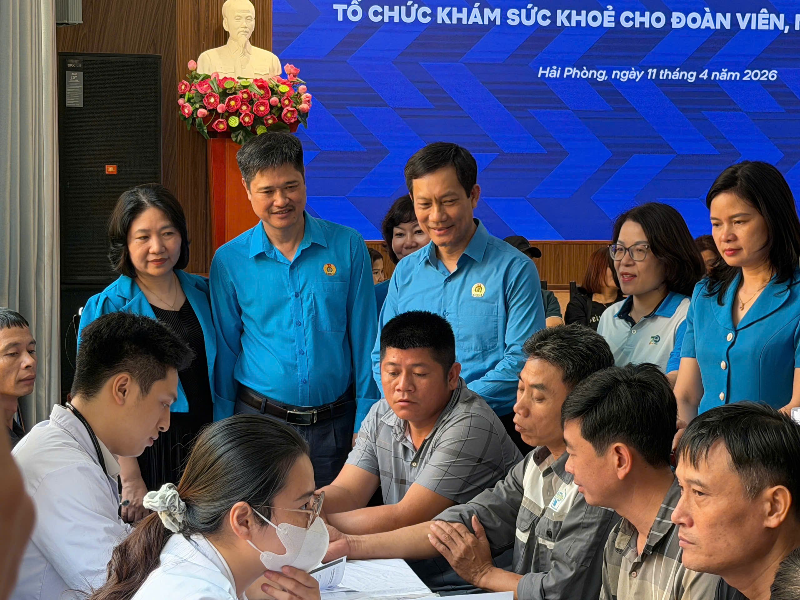 Ông Lê An Hải – Ủy viên Đoàn Chủ tịch Tổng Liên đoàn Lao động Việt Nam, Chủ tịch Công đoàn Công Thương Việt Nam thăm hỏi công nhân tại chương trình khám sức khỏe do Công đoàn tổ chức nhân Tháng Công nhân năm 2026