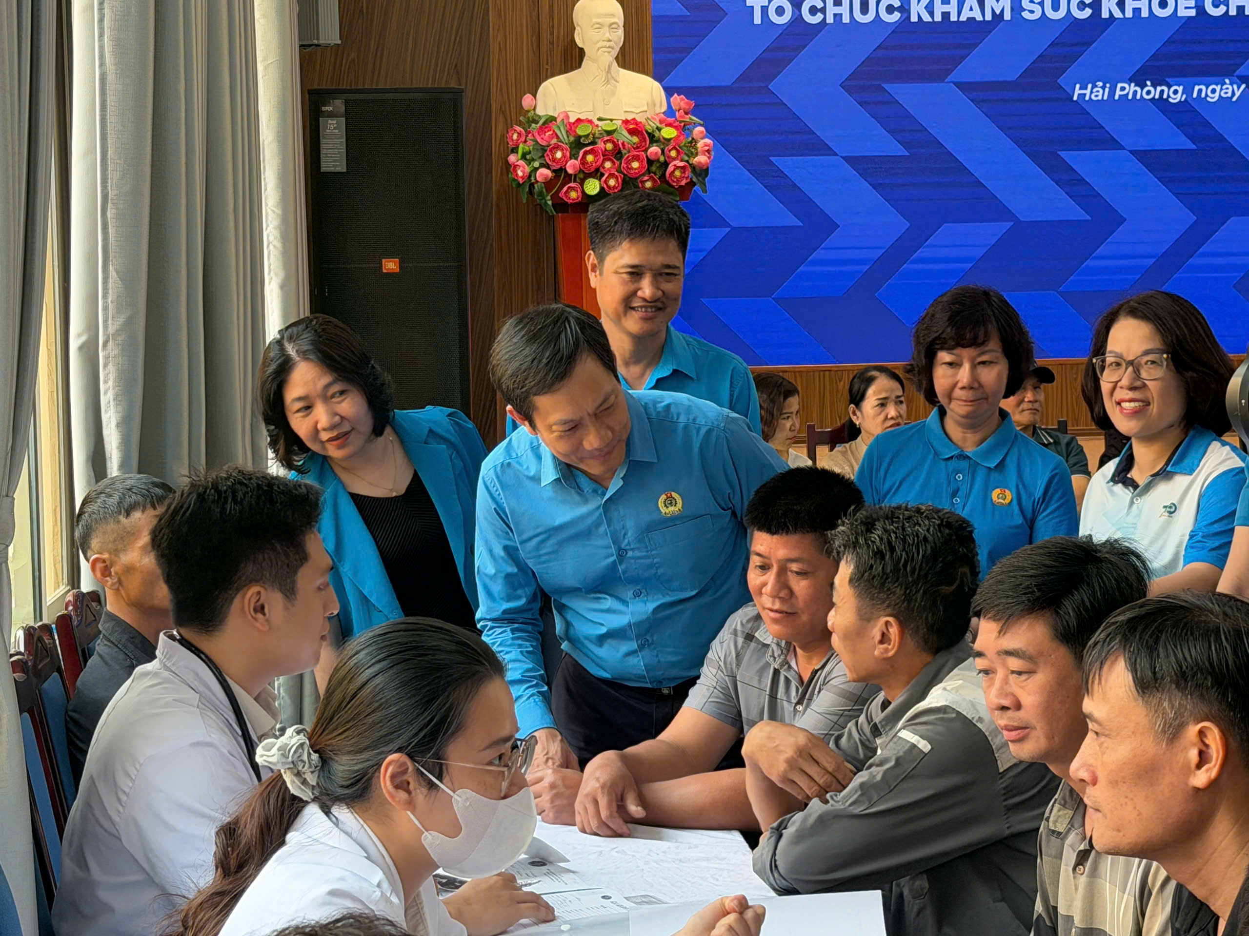 Theo đó, Công đoàn Công thương Việt Nam tổ chức chương trình khám sức khỏe miễn phí cho hơn 200 đoàn viên, người lao động của các đơn vị: Công ty cổ phần Bao bì Hùng Vương, Công ty Thép Hải Phòng, Công ty TNHH Thuốc lá Hải Phòng, Công ty Nhựa Bạch Đằng, Công đoàn VEAM và Công đoàn Tổng công ty Máy thiết bị và công nghiệp – CTCP.