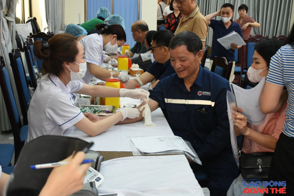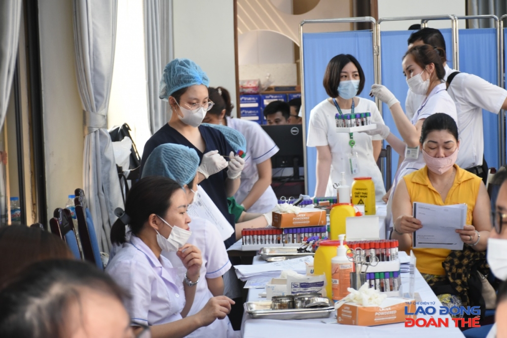 Toàn cảnh buổi khám sức khoẻ, tư vấn bệnh nghề nghiệp cho đoàn viên, người lao động. Ảnh: Nguyễn Việt